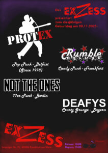 Also kommt vorbei, auf das ExZess-Geburtstagskonzert am 08. November in der Leipziger Straße 91, feiert mit uns, und feiert auch mit den diesjährigen wunderbaren Bands:
